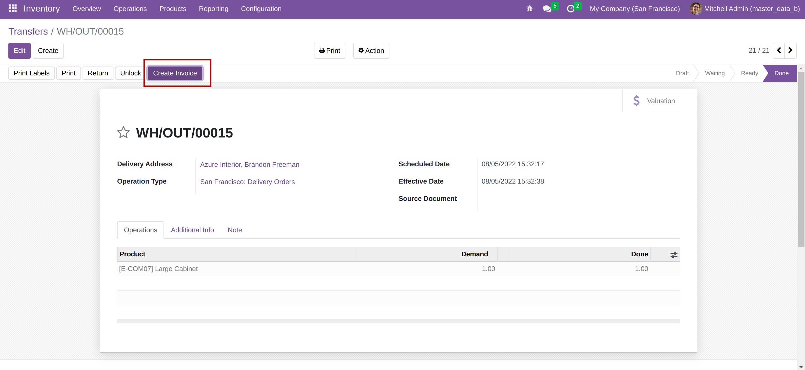 Create invoice in transfer