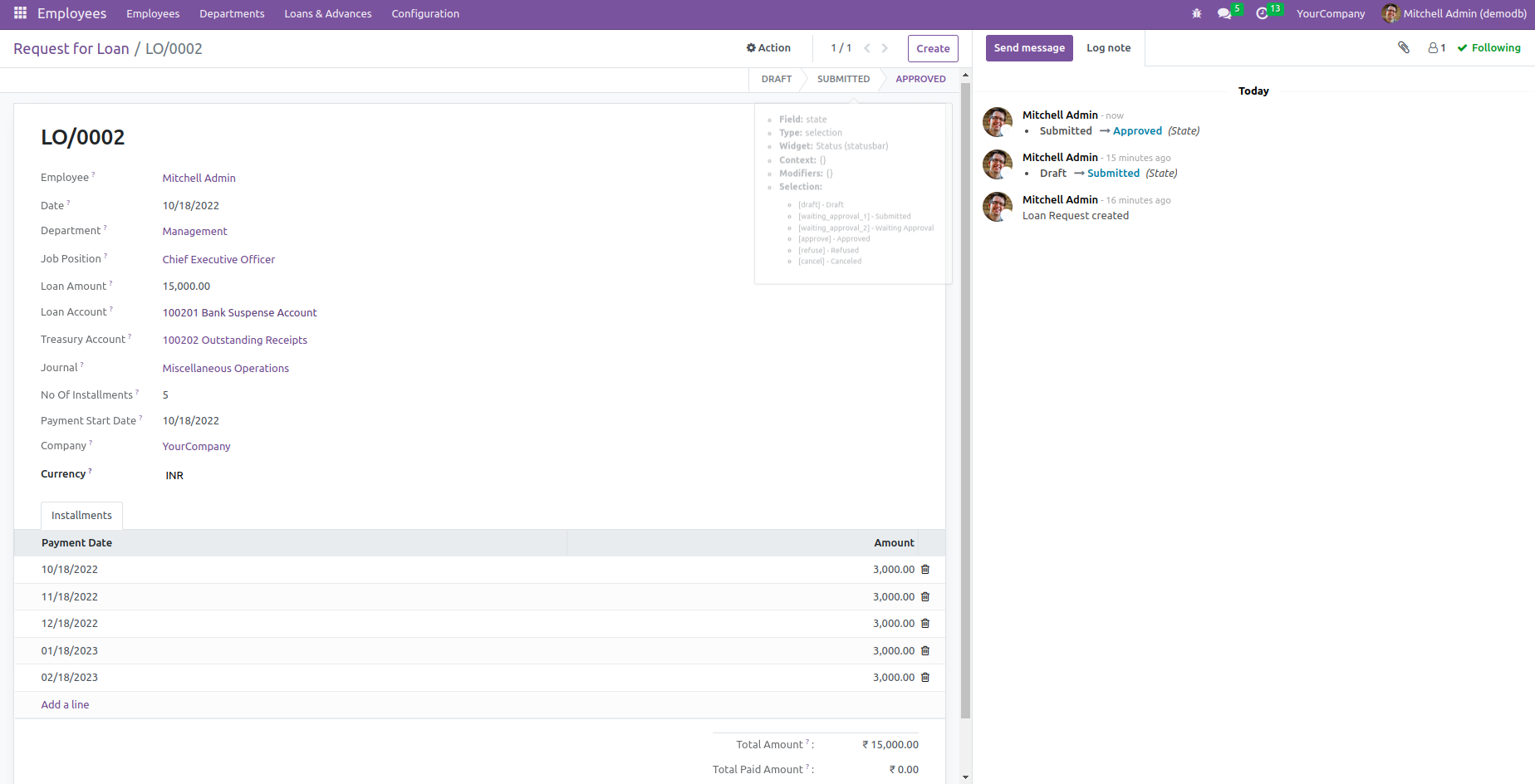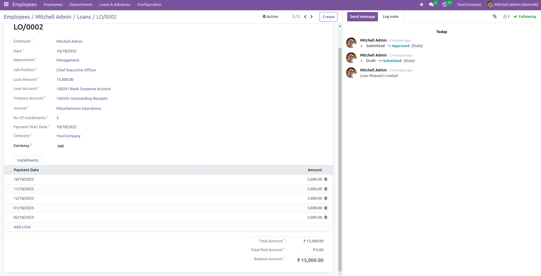When we check the Loan request again, the deducted installments will be changed to paid.