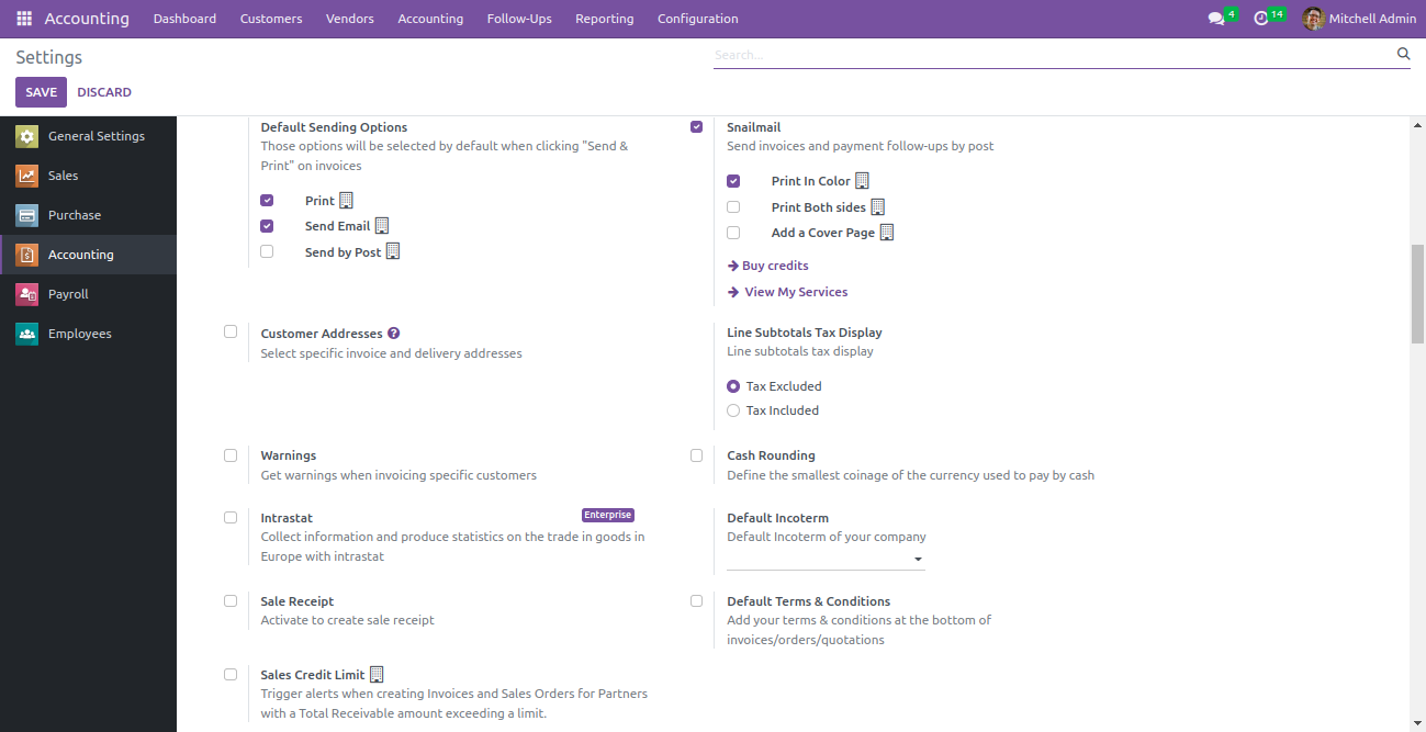 Enable sales receipts, purchase receipts, credit limit,